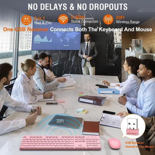 YES, the wireless keyboard and mouse share ONE USB receiver, it is stored on the back of the mouse next to the battery compartment.