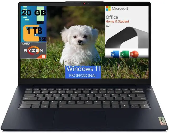 Lenovo IdeaPad 3 14 Laptop, 14.0" FHD Display, AMD Ryzen 5 5500U Hexa Core processor, AMD Radeon Graphics, 20GB DDR4 1TB PCIe SSD, WiFi 6, Bluetooth 5.0, Windows 11 Pro,Microsoft Office License