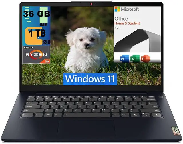 Lenovo IdeaPad 3 14 Laptop, 14.0" FHD Display, AMD Ryzen 5 5500U Hexa Core processor, AMD Radeon Graphics, 36GB DDR4 1TB PCIe SSD, WiFi 6, Bluetooth 5.0, Windows 11,Microsoft Office License