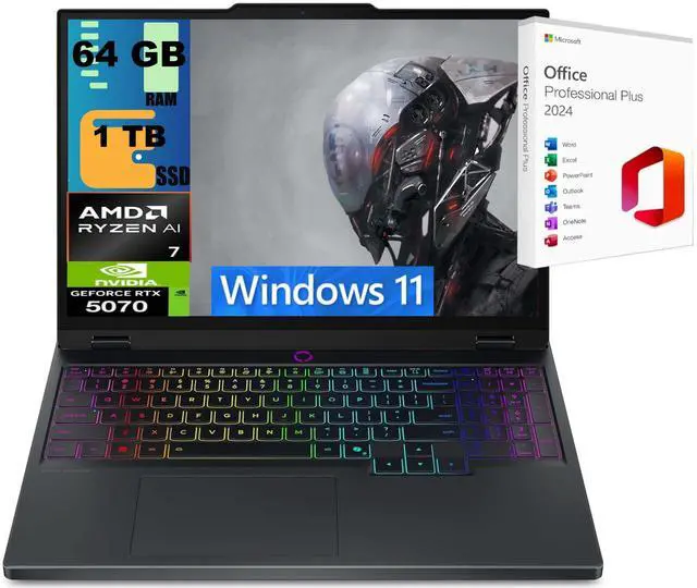 Lenovo Legion 5 15 Gaming Laptop, 15.1" 165Hz WQXGA Display, AMD Ryzen AI 7 350 8 Cores Processor, NVIDIA GeForce RTX 5070 8GB GDDR7, 64GB DDR5 1TB PCIe SSD, Windows 11 ,Office 2024 License