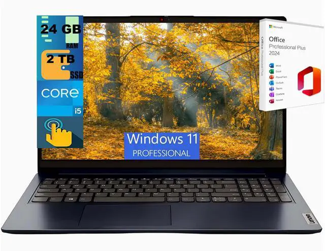 Lenovo Ideapad 1i 15 Laptop, 15.6" FHD Touchscreen, Intel Core i5-1335U 10-Core Processor, Intel Iris Xe Graphics, 24GB DDR4 2TB PCIe SSD, Wi-Fi, Windows 11 Pro ,Office 2024 License