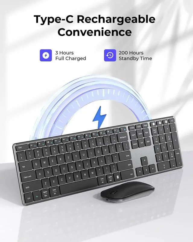 Both keyboard and mouse provide USB-A/BT1/BT2 three channels, allowing up to 3 devices at a time and switch easily, which free your desk space and make work easier. Specially designed for Windows/Mac OS/iOS/Android four systems, can work with Laptop Tablet MacBook Pro/Air iPad etc.