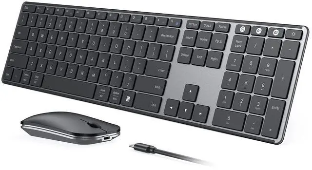 If you are looking for a slim, sleek, and lightweight keyboard and mouse for office, study or present, this would be a good choice. Ultra-thin design with only 0.12inch for keyboard and 0.9inch for mouse, high-quality metal panel and black & gray color, which makes your desk modern and simple.