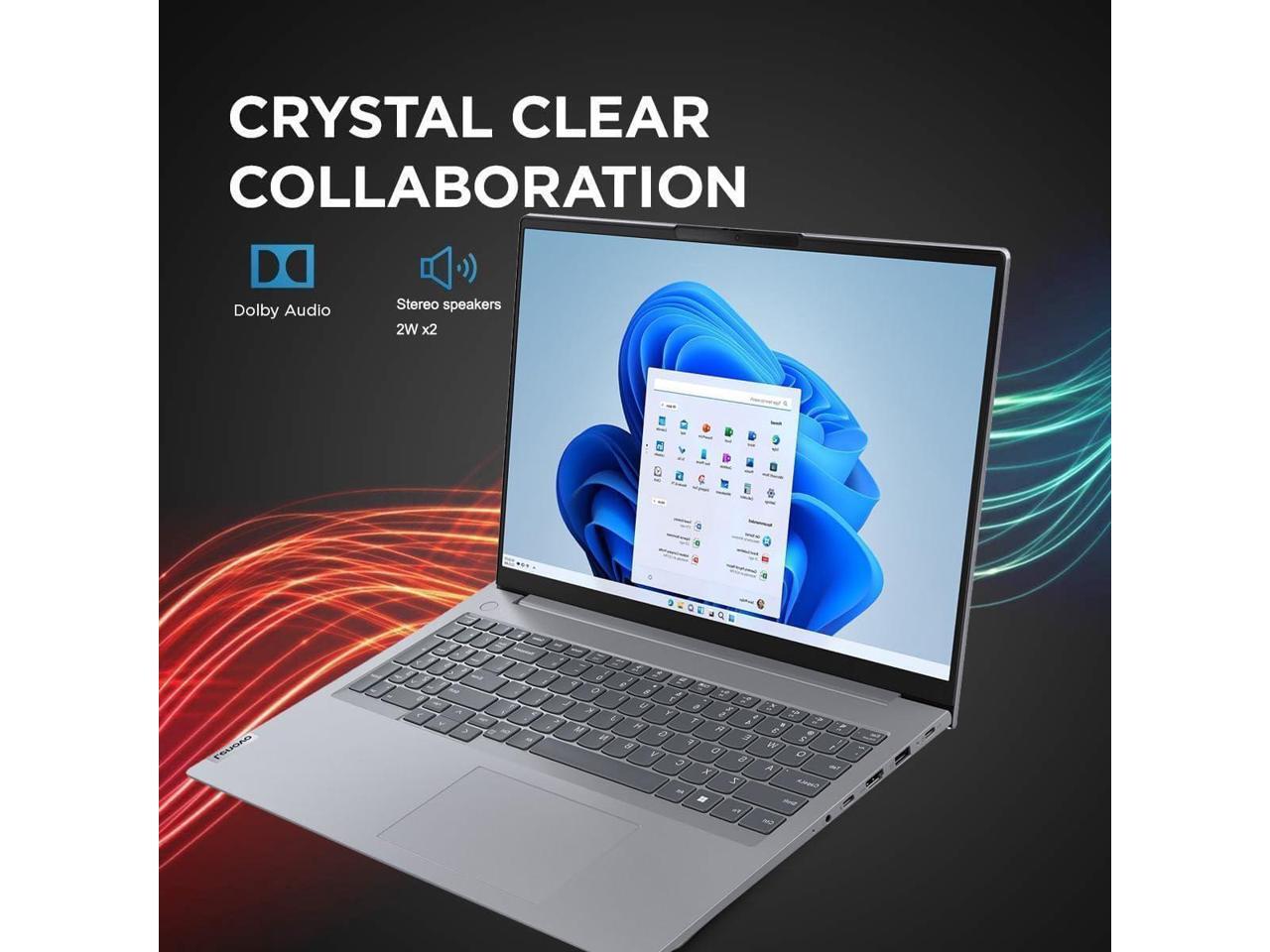 The ThinkBook 16, with a 13th Gen Intel Core i5-13420H, offers up to 4.6GHz speeds. Its 8 cores and 12 threads make multitasking easy for professionals and businesses.
