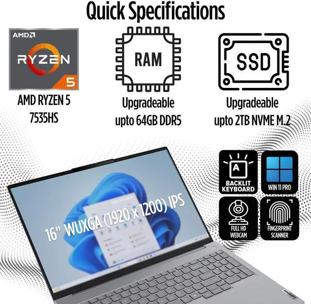 Equipped with an AMD Ryzen 5 7535HS Processor, 16GB DDR5 RAM, and 1TB SSD, this system ensures smooth multitasking, quick boot times, and exceptional responsiveness for demanding tasks like data analysis, photo/video editing, coding, and multitasking-heavy workflows.