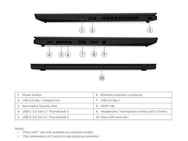 Lenovo ThinkPad X1 Carbon Gen 8 Laptop Intel Core i7-10610U 16GB Memory 256 GB NVMe SSD Intel UHD Graphics 14.0" Windows 11 Pro
