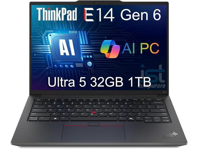 Lenovo ThinkPad E14 Gen 6 Business AI PC Laptop (14" FHD+ Anti-Glare, Intel 12-Core Ultra 5 125U (> i7-1355U), 32GB DDR5 RAM, 1TB SSD) Backlit, Fingerprint, 1080p Webcam, Thunderbolt 4, Win 11 Pro