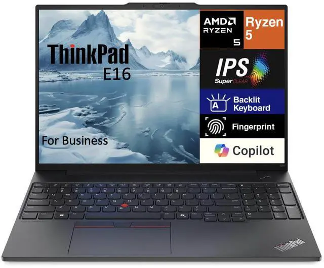 Model: Lenovo ThinkPad E16Form/Style: StandardProcessor: Zen 3 Gen AMD Ryzen 5 7535U 2.90GHz Processor (upto 4.5 GHz, 16MB Cache, 6-Cores, 12-Threads, )Memory: 16GB DDR5 SO-DIMMGraphics: AMD Radeon Integrated Graphics, Storage: 256GB PCIe SSD (Solid State Drive)Operating System: Windows 11 Pro-64Display: 16.0" IPS WUXGA (1920x1200) 60Hz 16:10 DisplayConnectivity: 802.11ax Wifi, Bluetooth 5.3, RJ-45Ports/Slots:, HDMI, 2 USB 3.2 Type-C, Headphone/Microphone Combo JackInput/Output: Webcam, Fingerprint, Black, Backlit KB Standard Keyboard, Battery: 65W PSU, Type-C Power-In, 3-Cell 47 WHr BatteryOther Features, Color: BlackWeight: 4.0lbProduct Dimensions (WxLxH): 9.9 IN x 14.15 IN x 1.00 IN