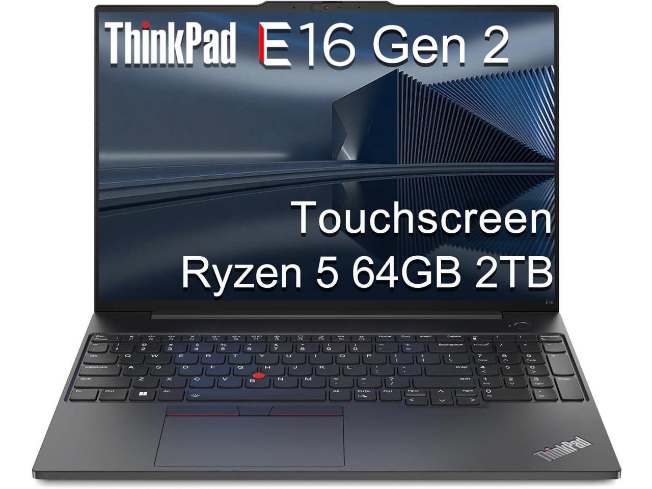 Lenovo ThinkPad E16 Gen 2 Business Laptop (16" FHD+ Touchscreen, AMD Ryzen 5 7535U (> Intel i7-1255U), 64GB DDR5 RAM, 2TB SSD) Fingerprint, Backlit, Webcam, Ethernet, Win 11 Pro w/ Copilot, Black