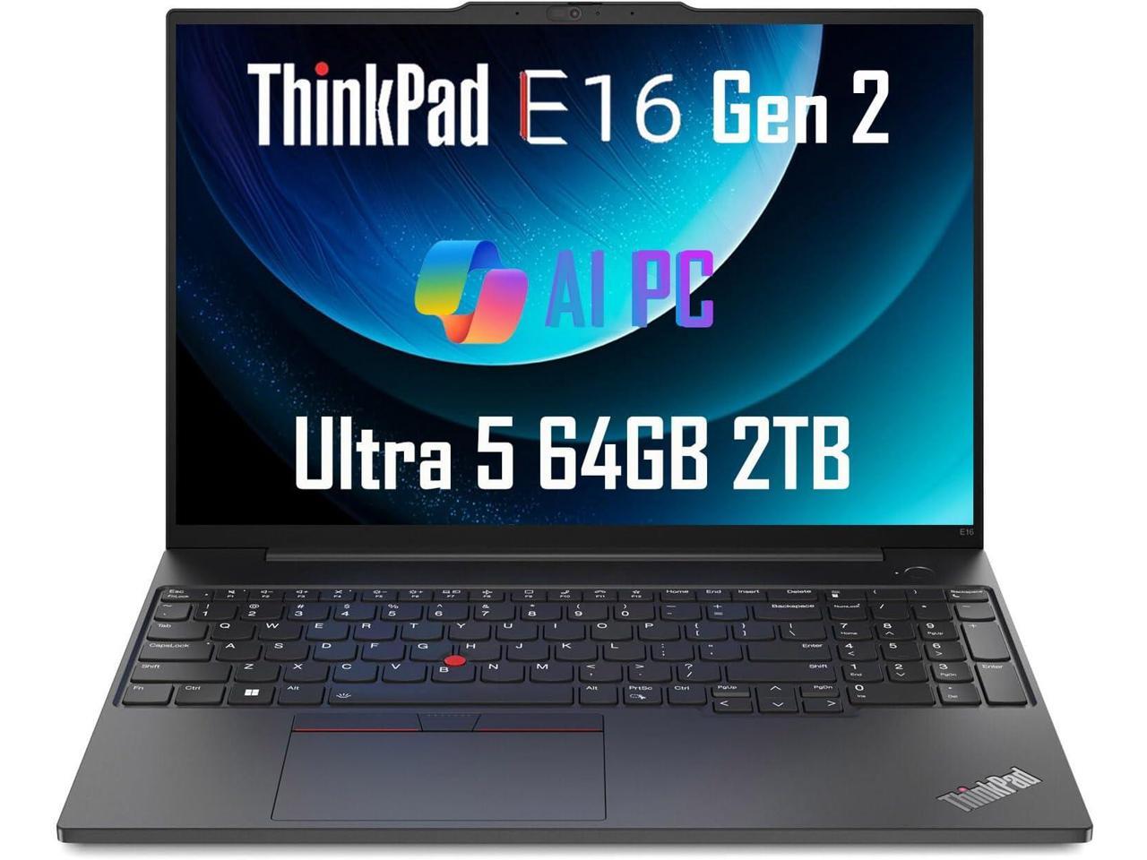 Lenovo ThinkPad E16 Gen 2 Business Laptop (16" FHD+ Anti-Glare, Intel Core Ultra 5 125U (> i7-1355U), 64GB DDR5 RAM, 2TB SSD) Fingerprint, Backlit, Webcam, Ethernet, Win 11 Pro, 2025 AI PC, Black