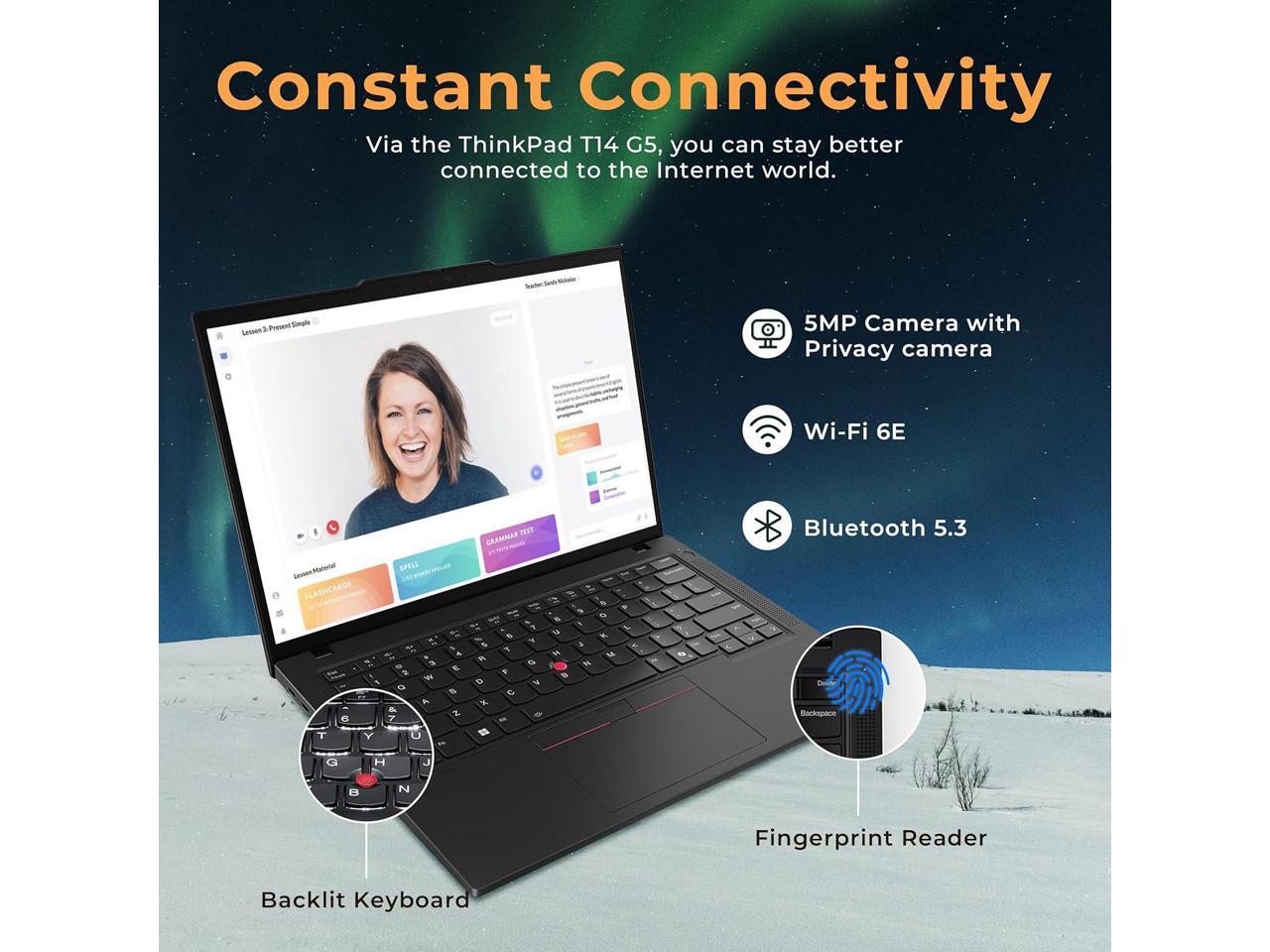Backlit KeyboardKeep going even in dimly lit rooms or aboard red-eye flights.Fingerprint ReaderEliminate password fatigue by replacing complex passwords with a simple and secure fingerprint scan.Intel GraphicsEnjoy vibrant colors and sharp details that bring your everyday content to life.Wi-Fi 6E