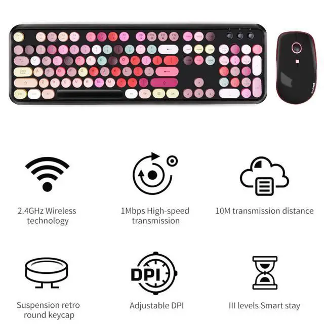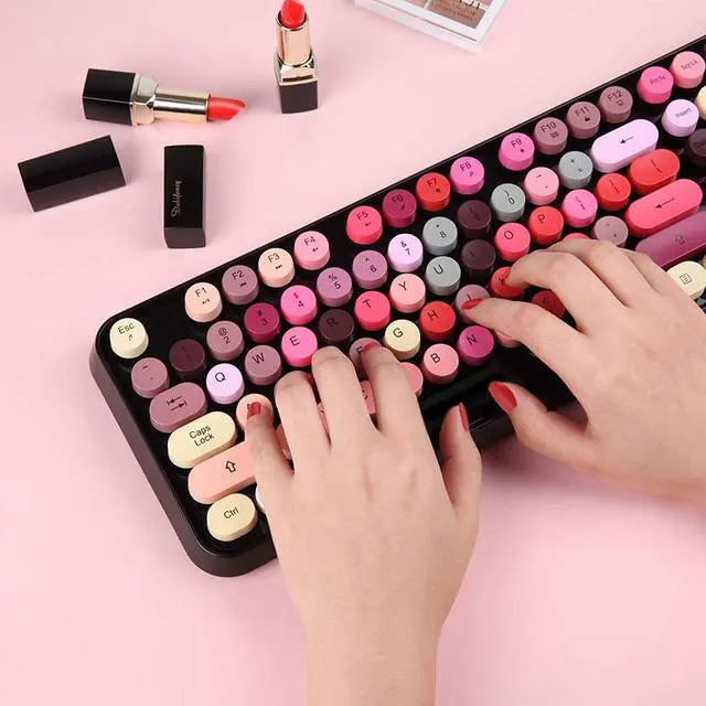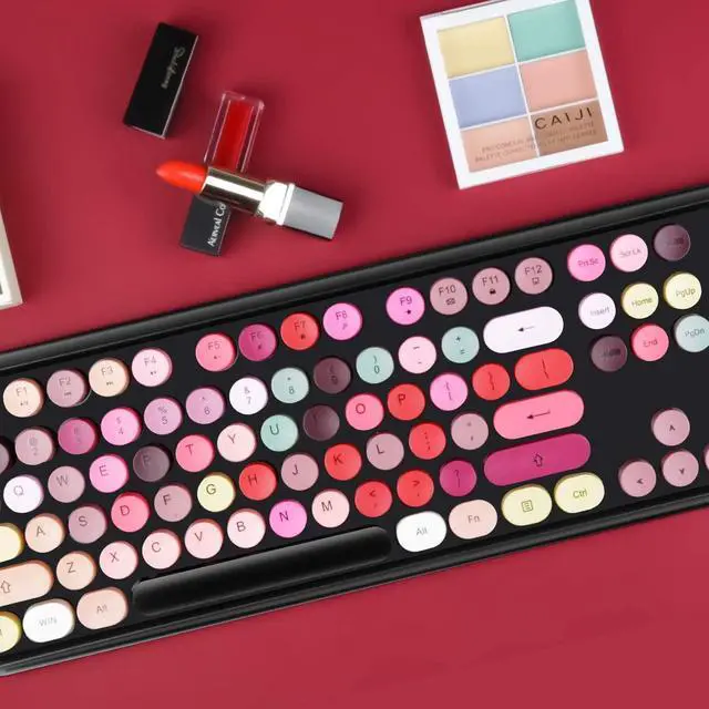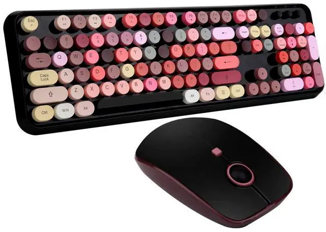 Cute Retro Black Colorful Typewriter Wireless Keyboard and Mouse