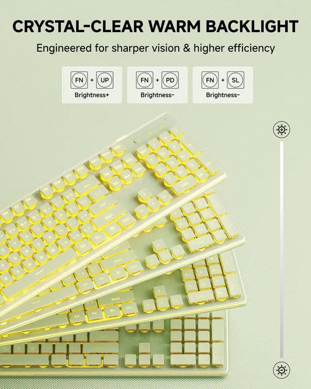 Thickened Metal Panel & Single Light: The V3 bluetooth keyboard and mouse uses a thickened metal panel, upgraded touch, stronger anti-scratch protection, more durable. Wireless mouse and keyboard uses suspended water drop pudding keycaps, which are quieter and less noisy, reducing typing noise by 95%. High light transmittance, super bright. When the warm backlight is turned on, the keyboard instantly shines brightly. The light has 5 adjustable brightness levels