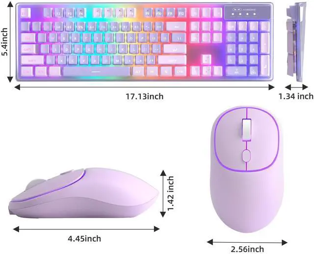V550 Wireless Gaming Keyboard and Mouse, 2.4G Full-Sized RGB LED Computer Keyboards with Transparent Shell, Rechargeable Quiet Cordless Mouse & Keyboard Combo for Laptop/PC/Desktop (Purple)