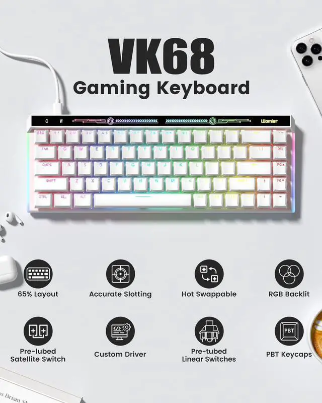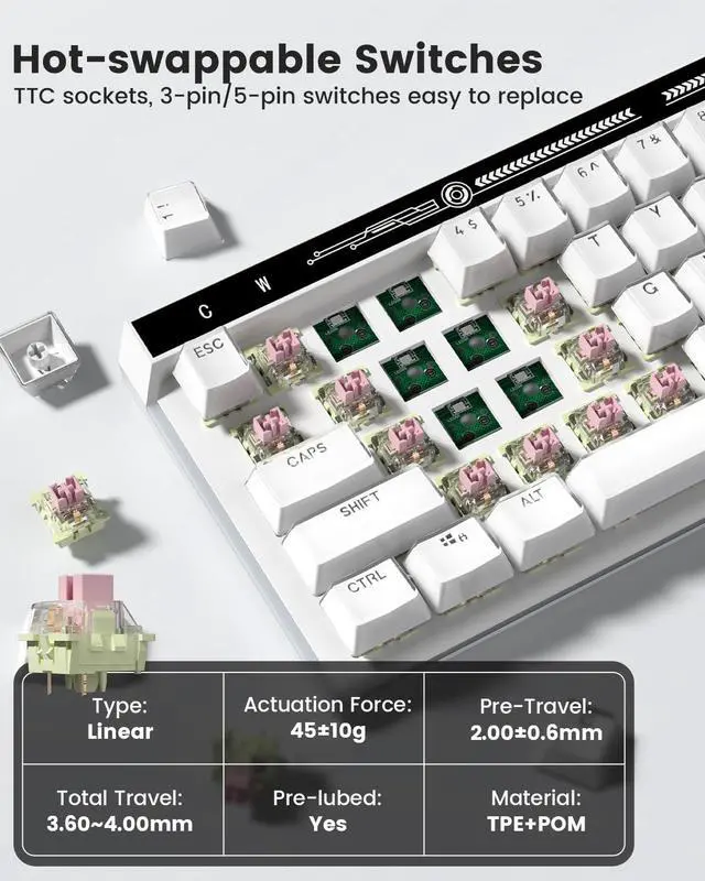 The keyboad takes finely-calibrated pre-lubed stabilizers. It't time to say goodbye to key wobble.