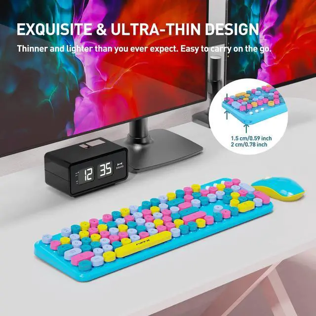Letton blue bubble keyboard and mouse wireless features 105 vintage typewriter-inspired rounded keycaps, gives you the most comfortable typing experience and adds some much needed spunk to your desk.