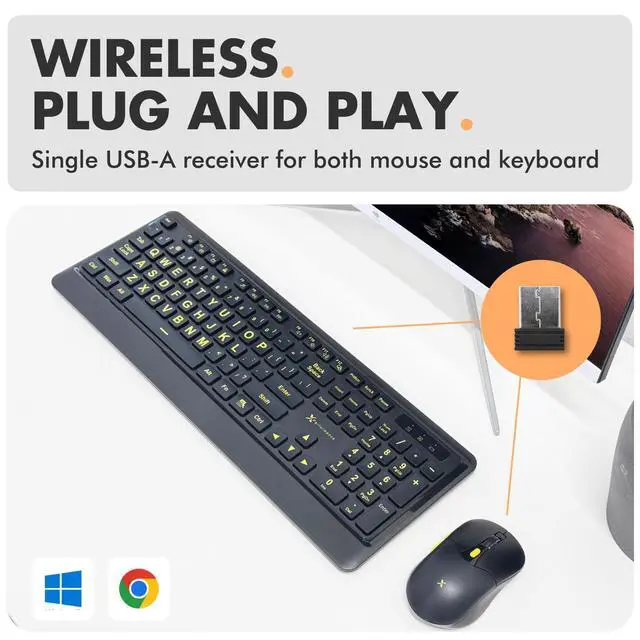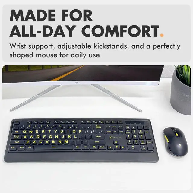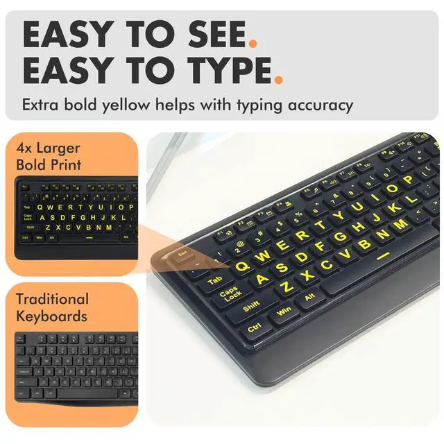 | High Contrast Keyboard Combo | Large Print Keyboard | Large Print Keyboard Combo | Backlit Keyboard w/ Dock | Ergo Keyboard + Mouse Combo | Ergo Keyboard + Mouse Combo |