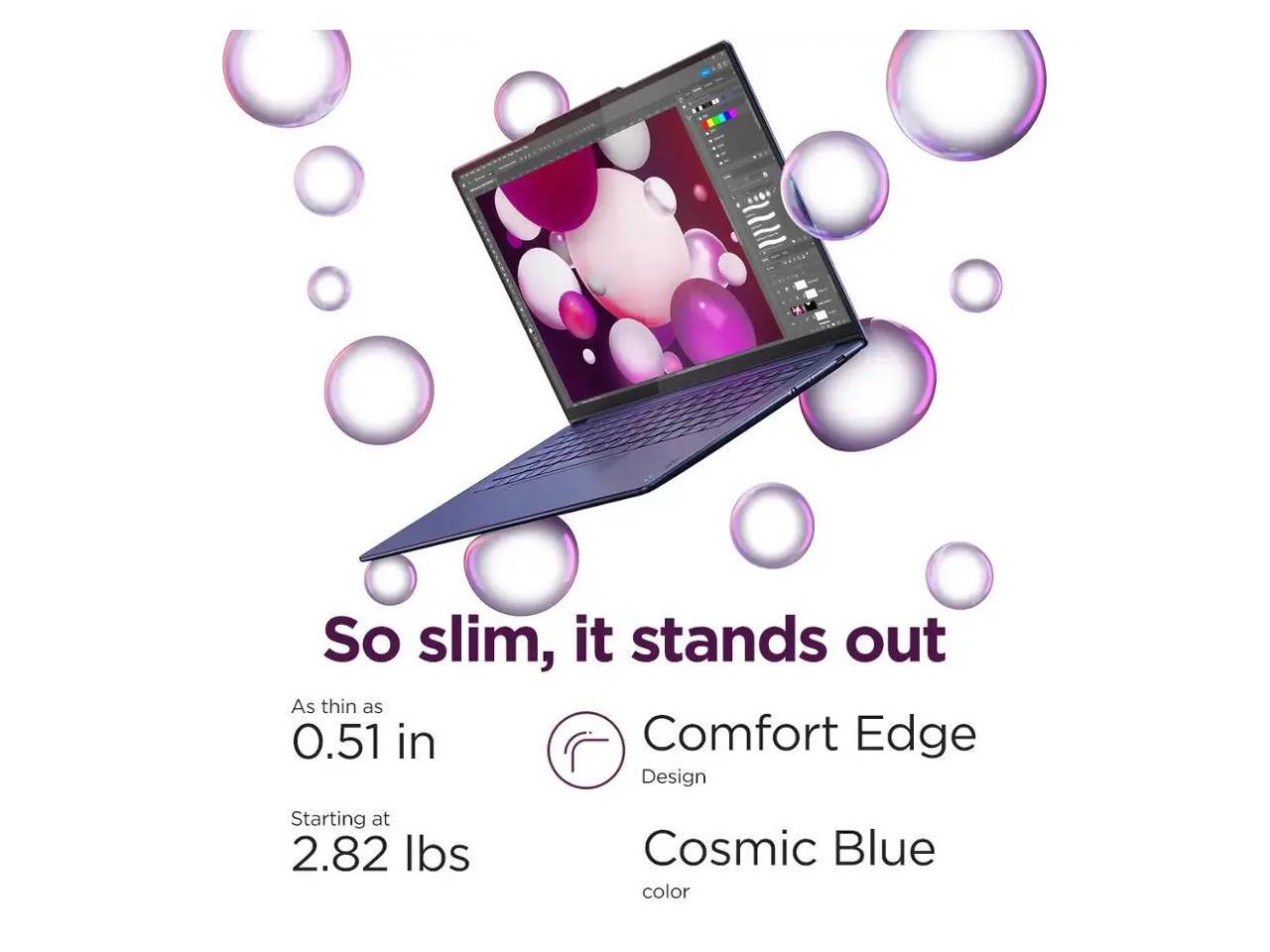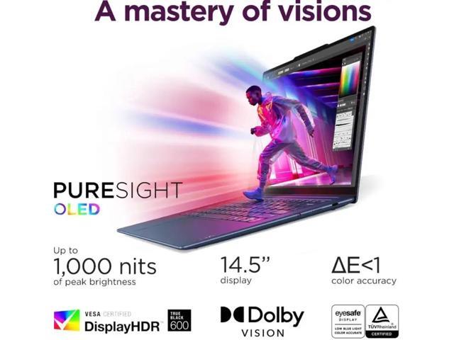 - [Display] Step into a new visual era with the Yoga Slim 7x's PureSight OLED display, refreshing your perspective at 90Hz. With 3K resolution, 100% Standard RGB coverage and a whopping 1000 peak nits HDR (500 nits SDR) of brightness, every detail pops in stark, vivid color. It's not just a touchscreen it's a window to a world where visuals are more lively and bright..