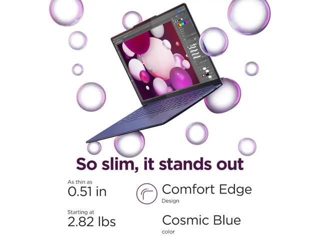 - [Others] Weight only 2.81 lbs, only 0.59" Thin; Wi-Fi 7, Bluetooth 5.4; Backlit Keyboard, 65W Power Supply Type-C Power-In, 4-Cell 70 WHr Battery; Cosmic Blue Color.