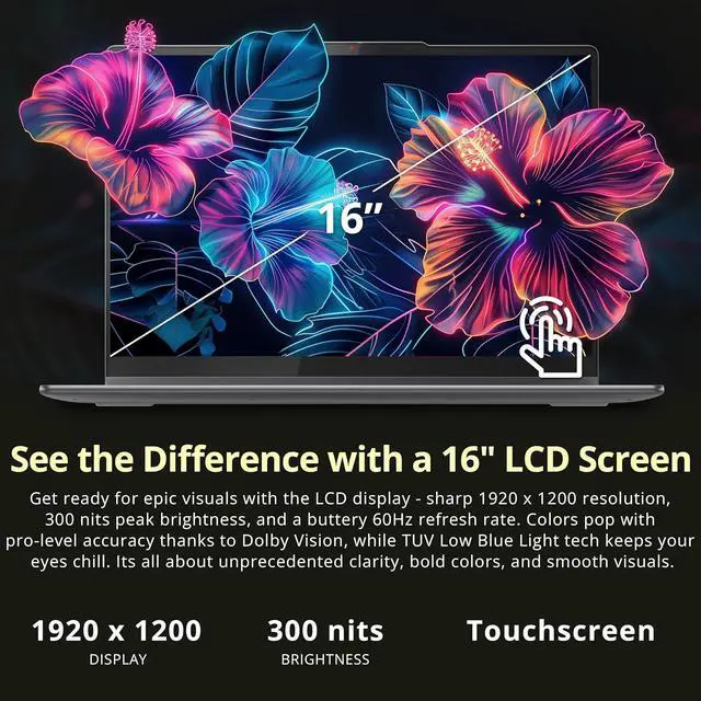 16" 2K 2-in-1 Touchscreen Display: Enjoy sharp, vivid visuals with wide viewing angles and a flexible touchscreen design for smooth laptop-to-tablet transitions.