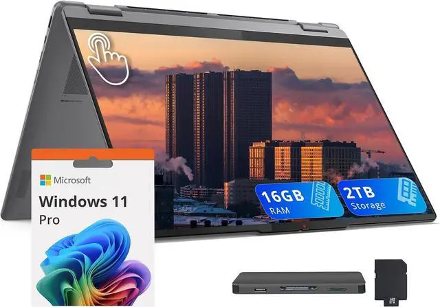 Lenovo Yoga 7i 16" 2K 2-in-1 Touchscreen Laptop, Intel Ultra 7 256V, 16GB RAM, 2TB Storage(1TB SSD+1TB Docking Station), Backlit Keyboard, Numeric Pad, Fingerprint Reader, Win 11 Pro, Gray