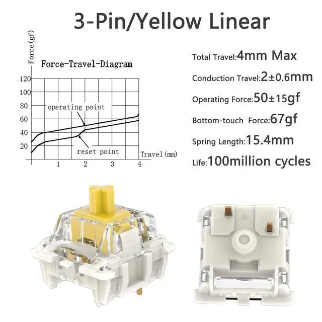 Yellow - Linear | 2±0.6mm Conduction-Travel | 4mm Total-Travel | 50±15gf Operating Force