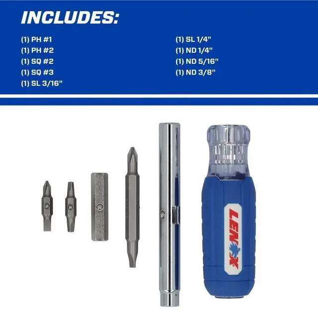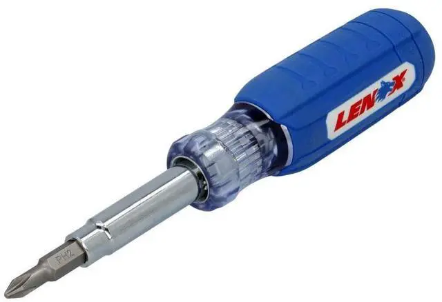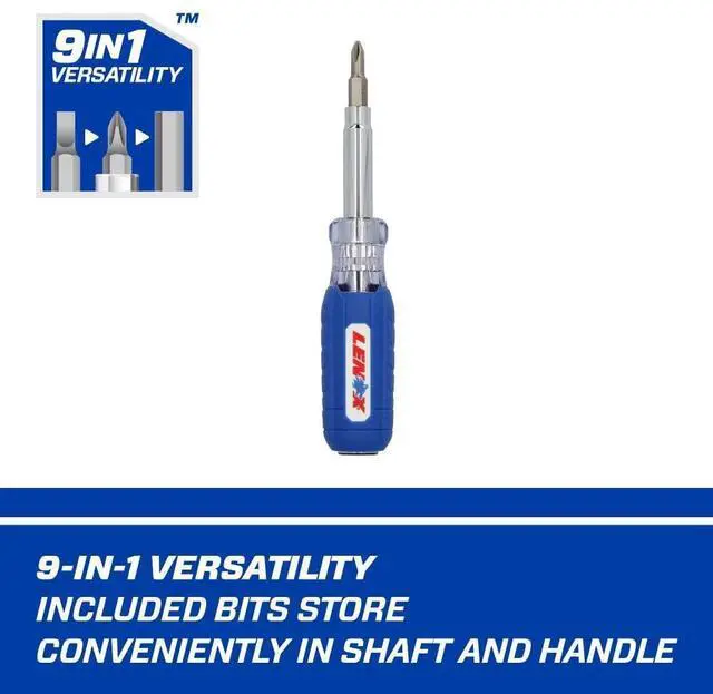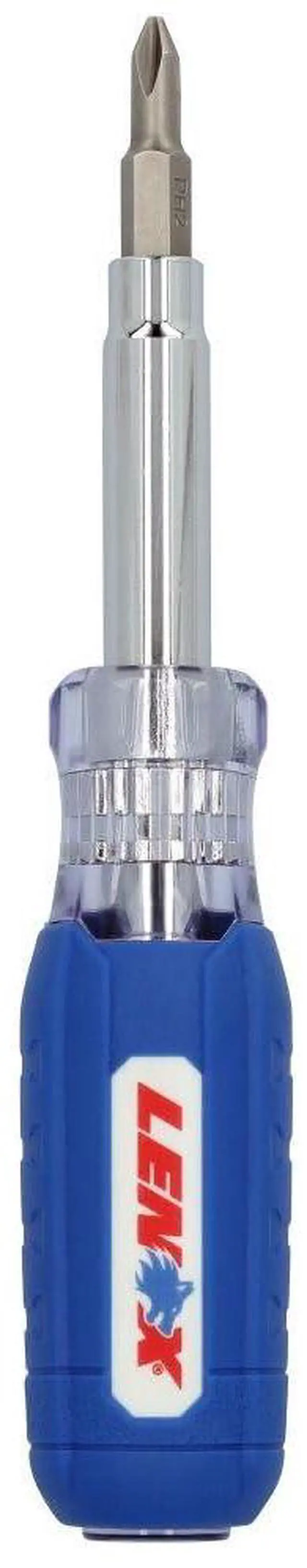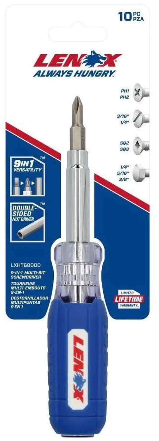 The LENOX 9-IN-1 Multi-Bit Screwdriver has a dual-sided removable shaft offering 1/4", 5/16", and 3/8" nut driving capability.