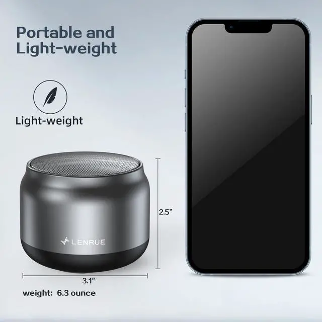 Compact and Light-weight: The wireless speaker is designed as an apple size,small and light-weight, Size:3.1"x H2.48" Weight:6.3ounce.