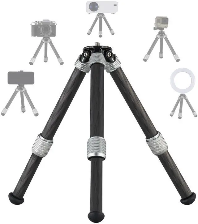 Carbon Fiber Small Tabletop Tripod: Lightweight carbon fiber tubing with a weight capacity of 5kg/11lb, the tripod weight only 160g/0.35lb. Other aluminum is CNC machined and hard anodized for durability and scratch resistance