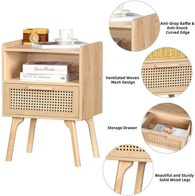 The rattan design brings a charming boho style to your space, and the drawer provides you with more private storage space, this bedside table makes your space neater and more artistic.