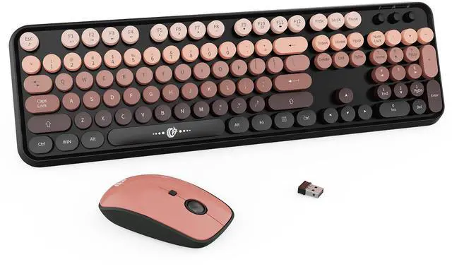 Wireless Keyboard Mouse Combo, 104 Round Keys Cute Colorful Keyboard with Retro Typewriter Style, Letton Full Size Keyboard with Number Pad&Mouse with 3 DPI for PC Mac Laptop Computer Windows-Black