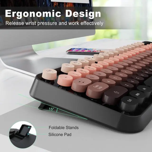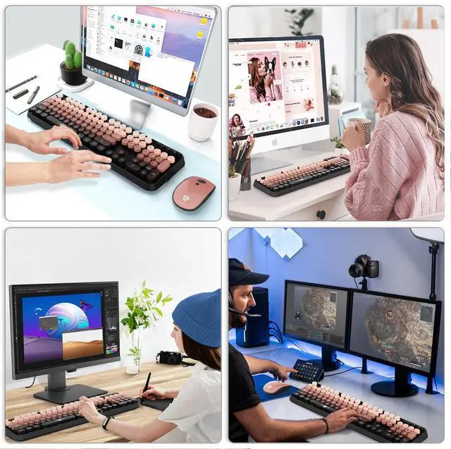 - [Wide Compatible]The wireless keyboard with round keycaps compatible with operating systems(USB 2.0 port), Perfectly used for Windows 2000 / ME / XP / 7 / 8 / 10, VISTA, PC, Destop, Laptop, Computer Chrome-book Notebook Smart TVs Home and Office more. Gorgeous gift package, you can used it by yourself or as a present to friends, lovers, children, kids etc.