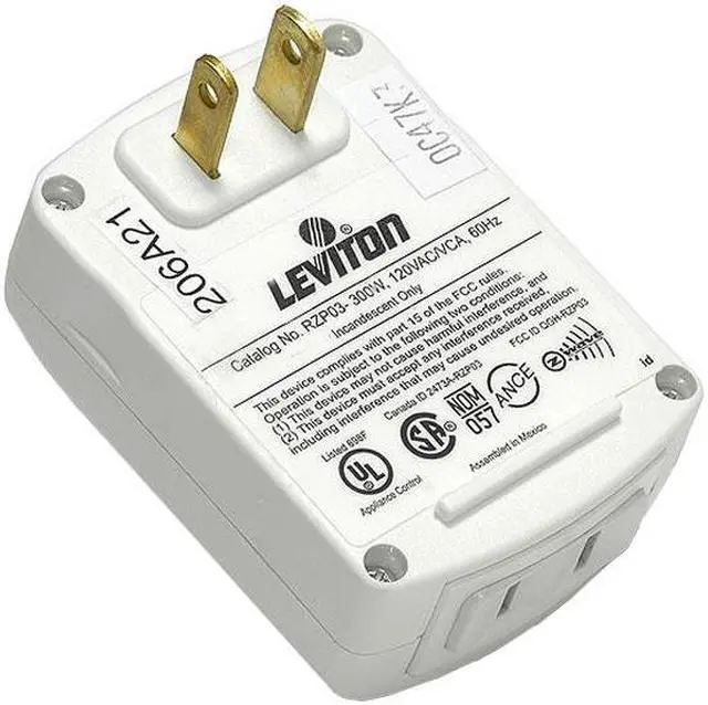 The Vizia RF + Plug-in Lamp Dimming Module supports dimmable incandescent bulbs up to 300W/2.5A and dimmable LED or CFL bulbs up to 100W. As a scene-capable module, it also allows you to incorporate the connected device into scene or zone control applications. The button on the front of the module is used to easily include/exclude the device in a Z-Wave network.
