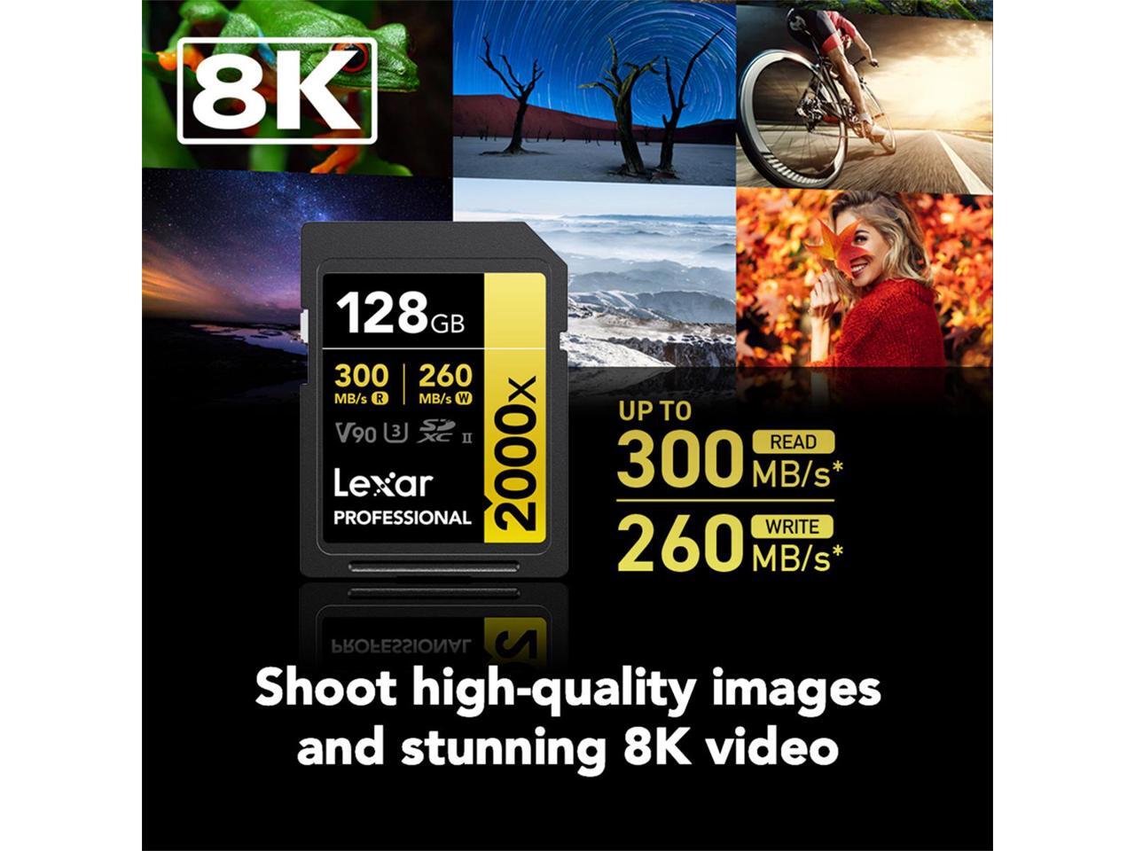 Lexar Professional SDXC Memory Card 2000x 128GB Class 10 UHSII U3 WO Reader