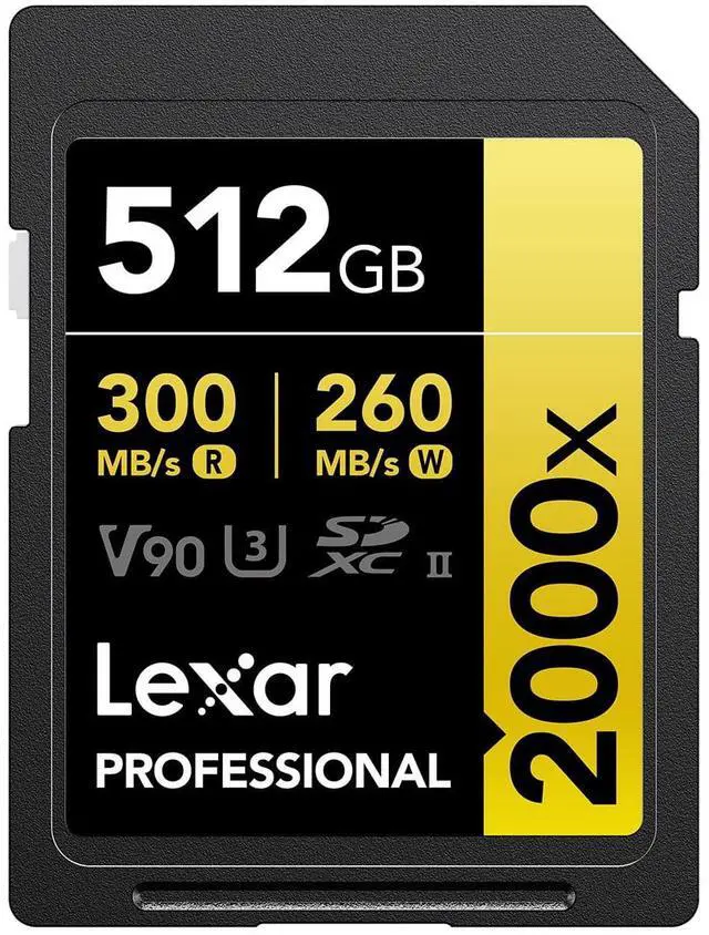 Lexar Professional 2000x SD cards offer super-fast speeds of up to 300 MB/s read, dramatically accelerating your workflow from start to finish. With write speeds of up to 260 MB/s, handle sequential burst mode and RAW plus JPEG effortlessly, so you never miss a shot.Designed for durabilityThese cards provide the performance you need to capture and store valuable data in a variety of elements. Lexar Professional 2000x SD cards are temperature-proof, shockproof, vibration-proof, and X-ray-proof.