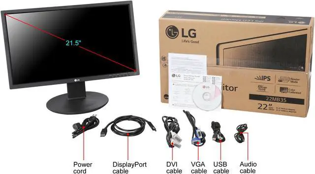 LG 21.5" IPS LCD Monitor IPS 5 ms D-Sub, DVI, DisplayPort 22MB35Y-I