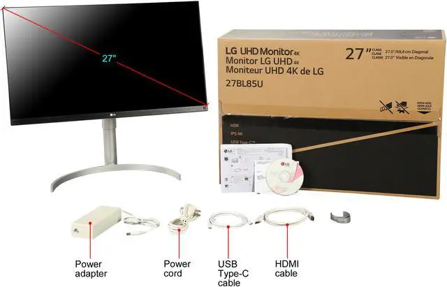 LG 27BL85U-W 27" 4K Ultra HD 3840 x 2160 HDMI DisplayPort USB Type-C FreeSync Tilt, Pivot, Height Adjustable IPS Monitor