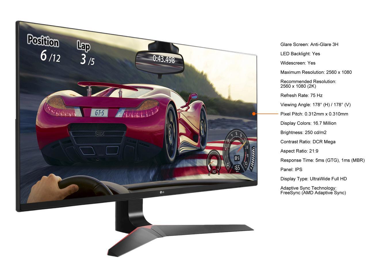 LG 34UM69G-B 34" Full HD 2560 x 1080 75Hz 1ms DisplayPort USB Type-C AMD FreeSync Built-in Speakers Flicker Safe 21:9 Ultrawide IPS Gaming Monitor