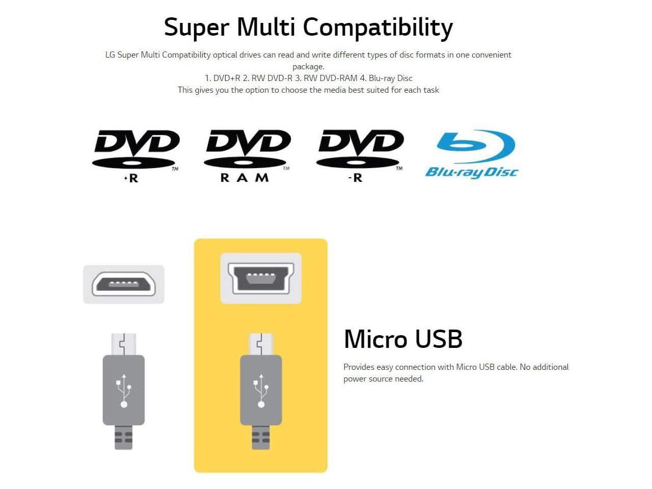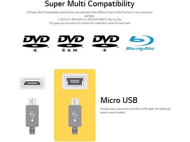 - BDXL SUPPORT: Simply plug in and record up to 100GB of files, photos, or business documents onto a BDXL (triple layer) disc. Also compatible with BD-R/RE, DVD-R/-RW/+R/+RW, DVD-RAM, CD-R/RW