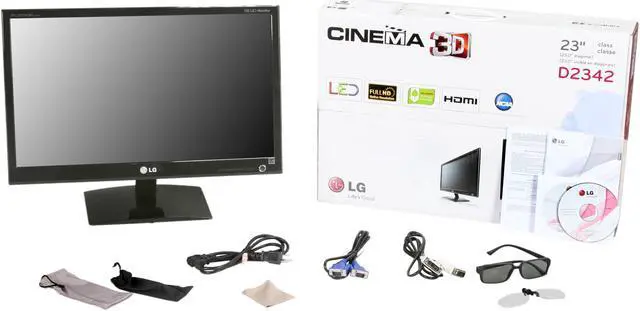 LG Cinema 3D (w/2D to 3D Conversion)Gamers, want 3D effects like you get it in the movie theater? Lightweight glasses, wider viewing angles and with clear 3D images? LG's Cinema 3D experience can bring it right to your desktop. Enjoy amazing depth along with smoother, crisper images, and great 3D effects -- no overlapping images or dizziness associated with conventional 3D technology.