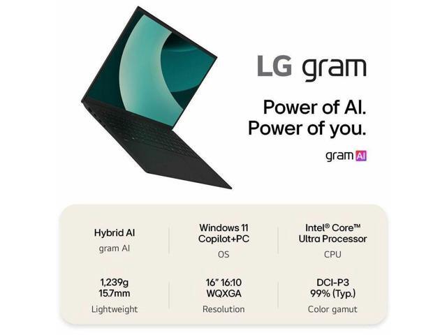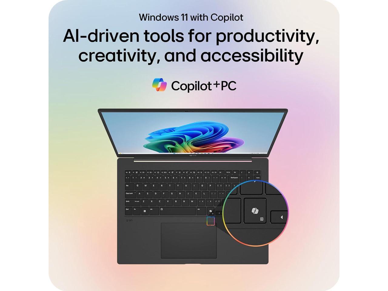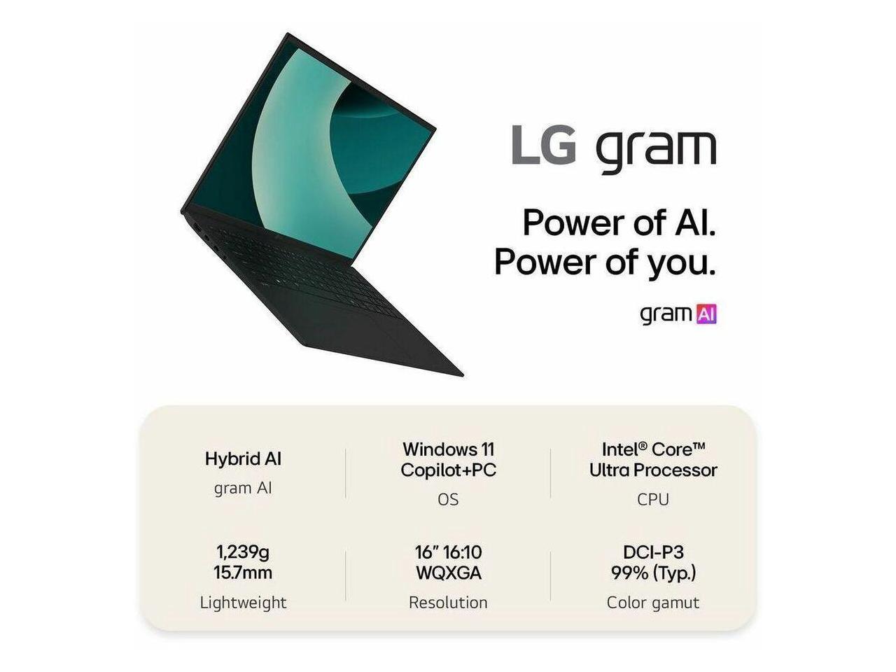 LG gram 16-inch Thin and Lightweight Laptop Computer, Copilot+ PC, Intel Evo Edition Powered by Intel Core Ultra7 256V Processor, Windows 11 Home, 16GB RAM, 2TB SSD - Obsidian Black
