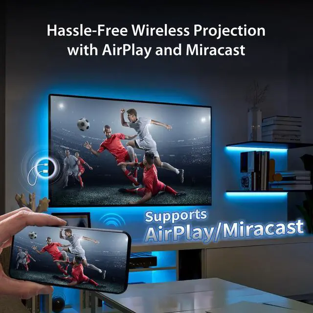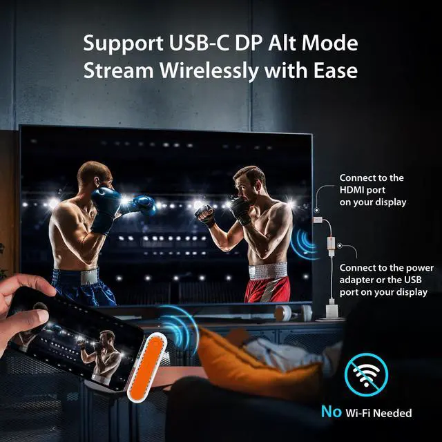 The Easiest Way to Share Your Screen - Just Plug and Play Experience the magic of truly effortless screen sharing. Simply plug the compact transmitter into your phone or laptop and the receiver into your TVthats it. There are no apps to install, no passwords to enter, and no Wi-Fi networks to join. Its the most direct and hassle-free way to take your content from a small screen to a big one in seconds.