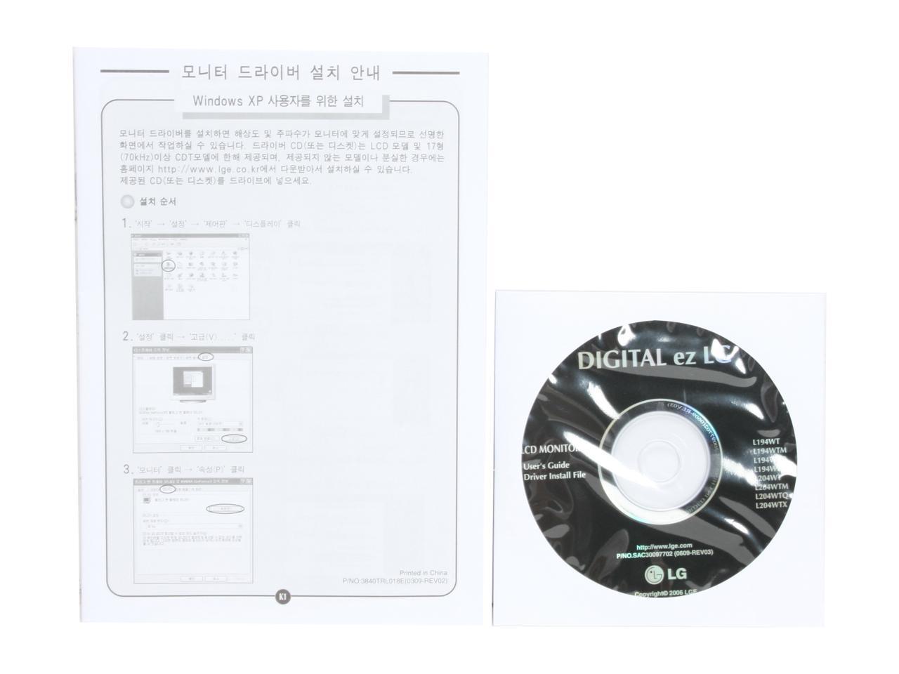 L204WT-SF LCD Monitor User Manual VGA Cable Power Cable Support Disk
