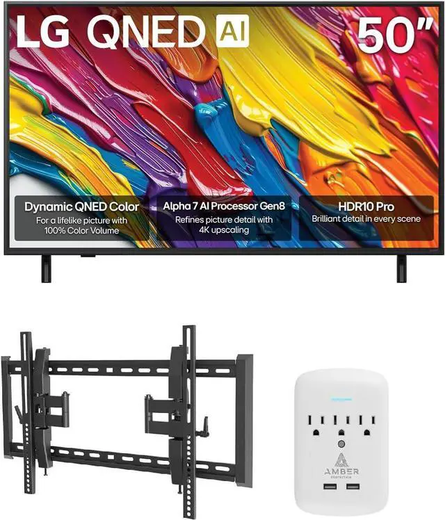LG 50QNED82AUA 50 Inch QNED AI 4K Smart TV with a Walts TILT-EXTENSION-37-90 Tilt Mount and Amber Protection 3-OUTLET-SURGE Surge Protector (2025)