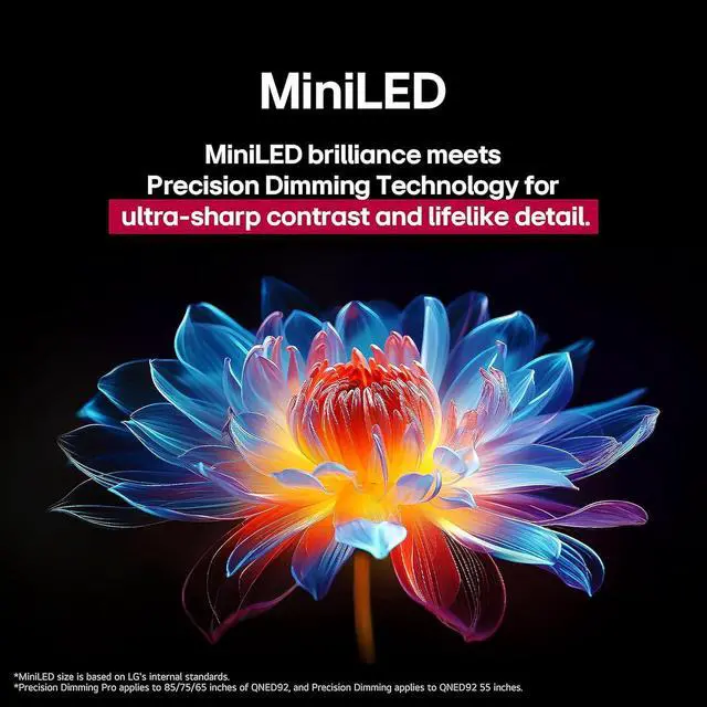 • LG Precision Dimming Pro controls MiniLEDs with hundreds of dimming zones that can be individually controlled for better black levels and brighter colors