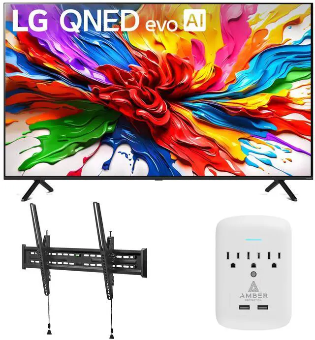 LG 65QNED92AUA 65 Inch 4K QNED Mini LED evo AI Smart TV with a Walts TILT-MOUNT-43-90 Large/XL Tilt Mount and Amber Protection 3-OUTLET-SURGE Surge Protector (2025)