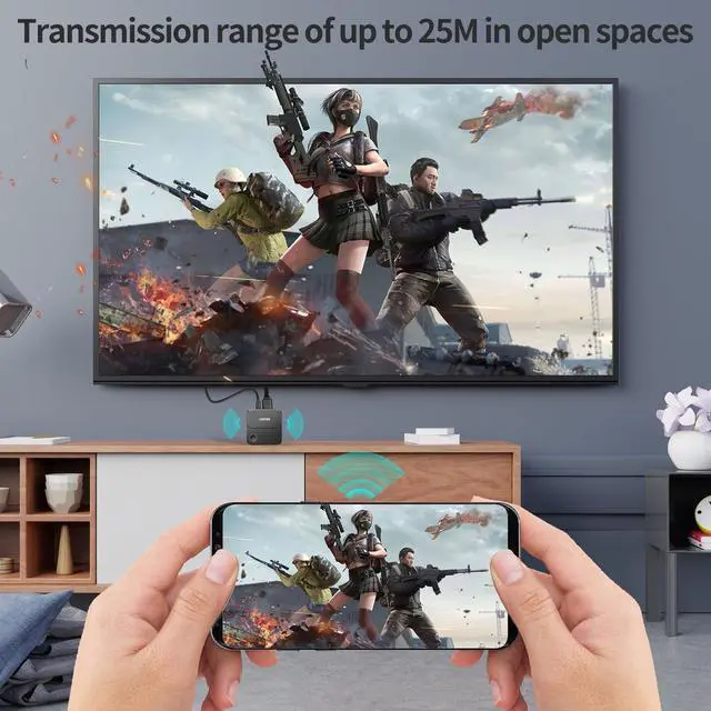 Experience Seamless Wireless Streaming: This Wireless Display Dongle is a plug-and-play gauge, simply connected with WiFi signal. Effortlessly cast and stream contents from Android/ iOS devices, laptops/ tablets. With an impressive transmission range of up to 25 meters in open spaces, you can enjoy wireless streaming from virtually anywhere in the room. Say goodbye to messy cables and hello to freedom. If there are many electronic devices and they interfere with each other, the connection distance may be only 5M.
