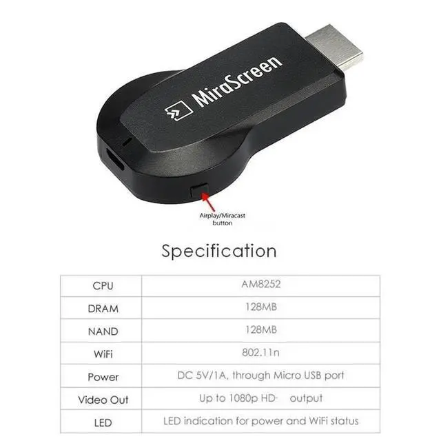 - Supports mirroring screen to TV, Projector, Monitor, Display, etc. The only requirement for the devices is HD input port Equipped.
