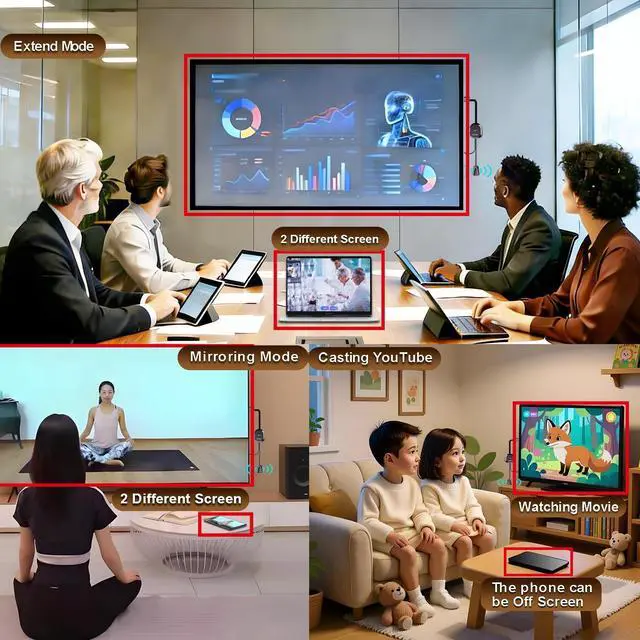 Why opt for the HRpart wireless Screen Mirroring adapter? It eliminates the hassle of long, messy cables while enabling you to mirror audio, video, office documents, and other content from small screens to large ones. Whether you want to share files, photos, or videos on an HDMI-equipped TV, monitor, or projector, this adapter delivers seamless performanceperfect for presentations, meetings, exhibitions, and beyond.