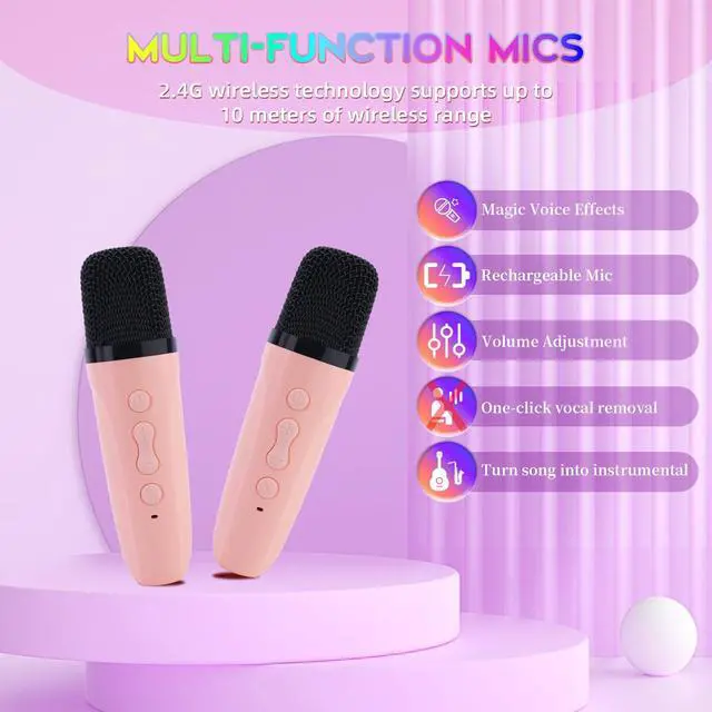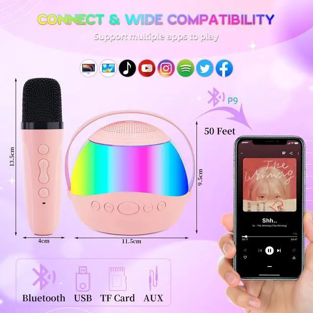 Karaoke machine for kids - They have a microphone karaoke and can play for a long time. 4, 5, 6, 7, 8, 9, 10, 11, 12+ year old girl gifts, boys gifts, birthday gifts.Mini karaoke machine for family time LED lights dancing with the music creating a fun atmosphere. 1.Enjoy your party time 2.Unleash endless fun for kids 3.Happy family reuion time 4.Enjoy singing together with your family